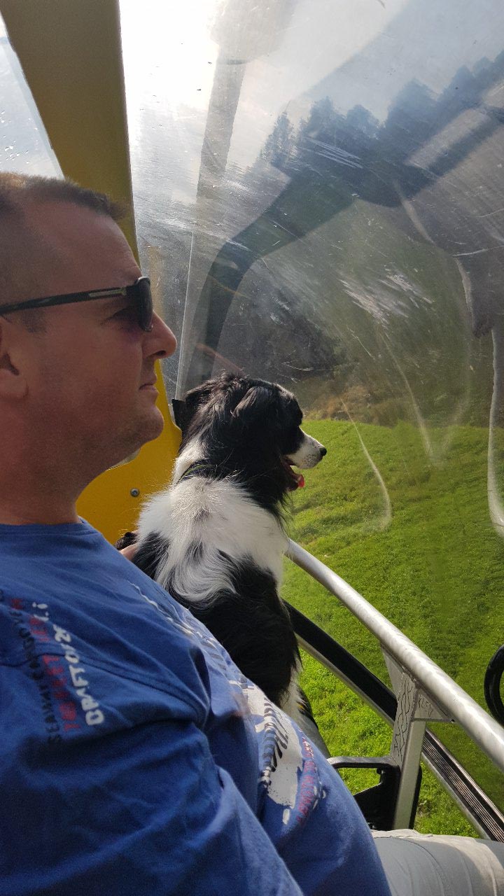 Ich bin sogar das erste Mal mit einem Sessellift gefahren. Normalerweise fahren wir immer mit der Gondel nach oben und dann laufen wir die wunderschönen Berge wieder hinunter.