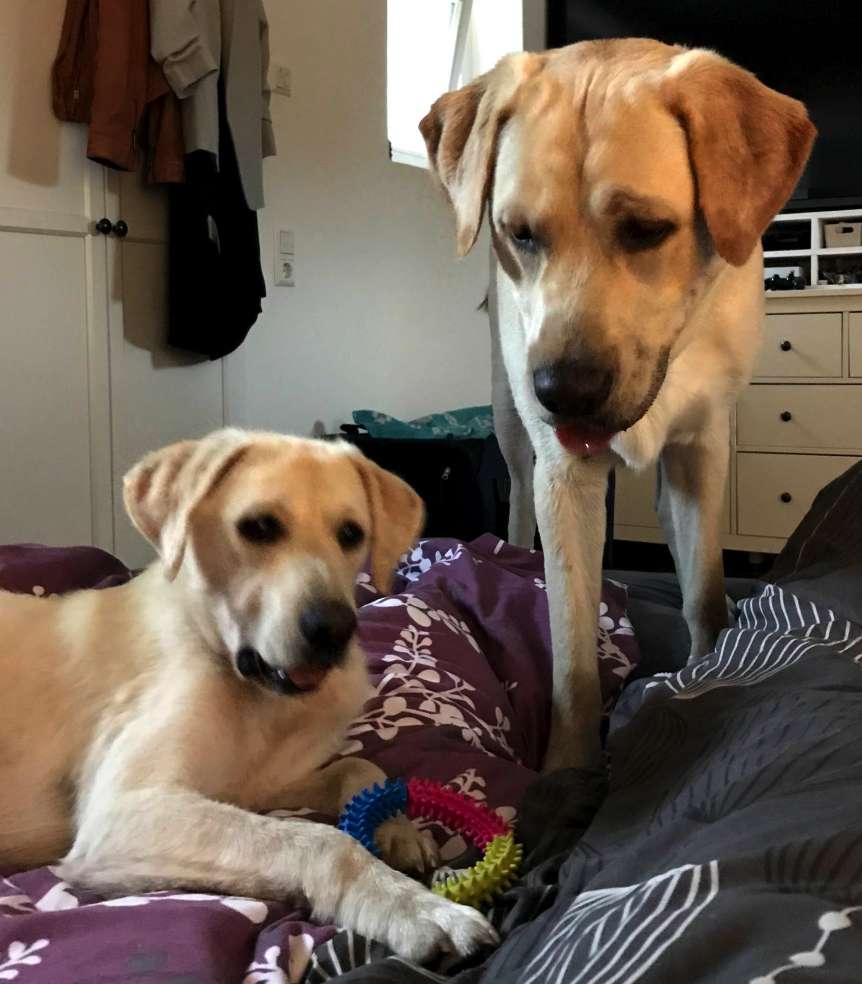 Des Weiteren klappt das Gassi gehen mit beiden Hunden auch super und Abby's Leinenführigkeit ist schon gar nicht schlecht. Wir haben in der ersten Woche hauptsächlich ihren neuen Namen und Sitz geübt - was schon prima klappt.