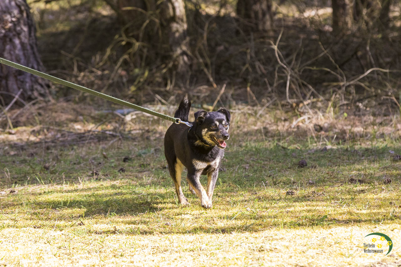 Wir haben die kleine Hündin nach Berlin vermittelt. Dort lebt sie fortan in einem sehr ruhigen Wohnviertel unmittelbar neben stillgelegten Naturflächen der Wuhlheide.