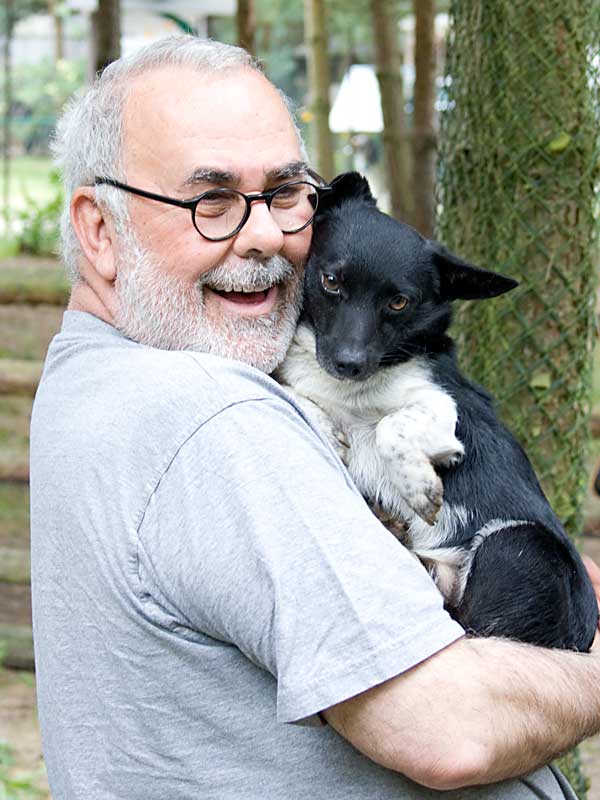Bei einem Besuch entdeckte unser Schirmherr Udo Walz den kleinen süßen Hund Gonzo. Beide konnten sich kaum trennen.