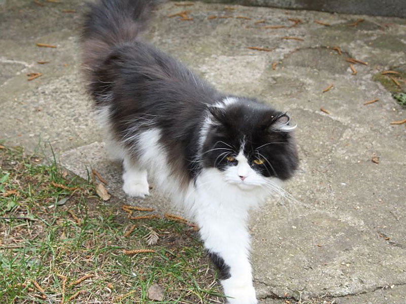 Leopold musste dieses komische weiße Zeug mal genauer betrachten, dreht gern auch so 10 Minuten seine Runde, zieht es aber dann doch vor von drinnen zu schauen.