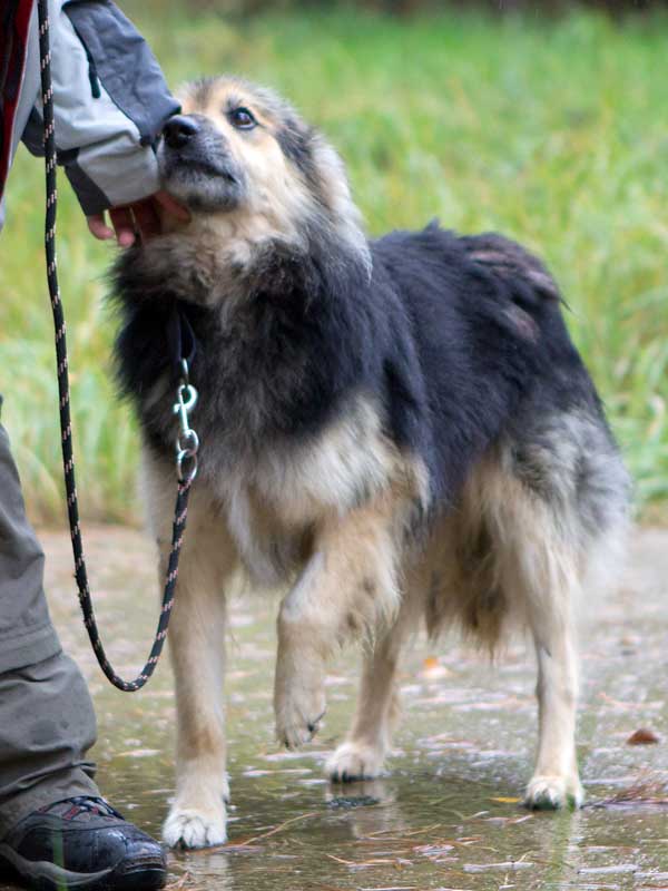 Dinky gefiel das scheußliche Regenwetter beim Fotografieren auch so gar nicht. Schließlich ist man als Collie-Sheltie-Mischling besonders stolz auf ein gepflegtes Plüschfell.