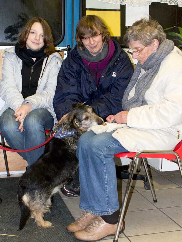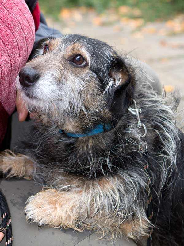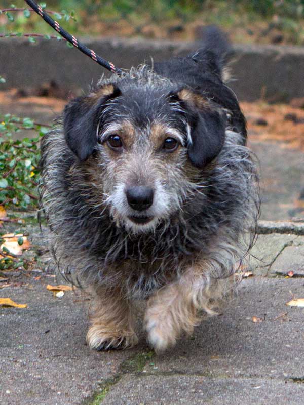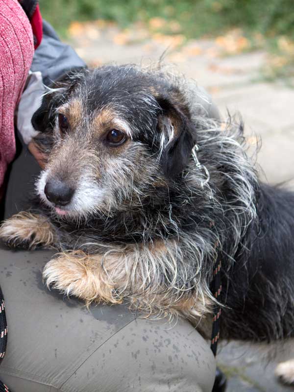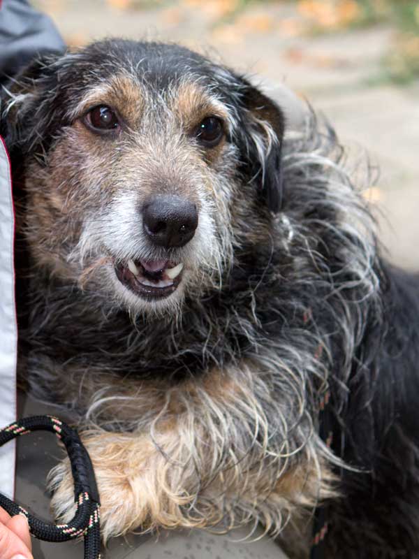 Wie viele seiner Tierheimkumpel kann jetzt auch Gordy das Berliner Straßenleben erkunden, denn sein neues Frauchen wohnt in der Hauptstadt. Ursprünglich wollte sie Mariella adoptieren, doch die junge Hündin ist viel zu agil und anstrengend für einen älteren Menschen. Da passt der ausgeglichene Gordy, dessen Geburtsjahr unsere Tierärztin auf 2001 geschätzt hat, doch viel besser.