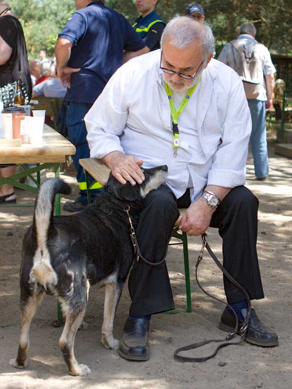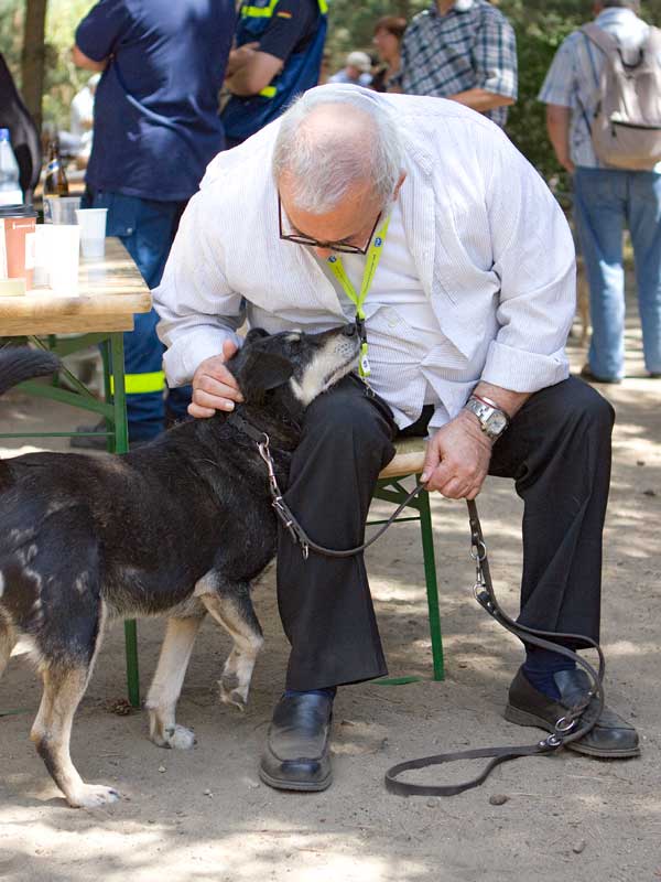 Das wäre unverdient, denn Dingo ist noch sehr agil und liebt ausgedehnte Gassigänge. Auch Schmuseeinheiten können es nie zu viele für ihn werden. Das merkte schon unser Schirmherr Udo Walz beim Sommerfest (s. Fotos).