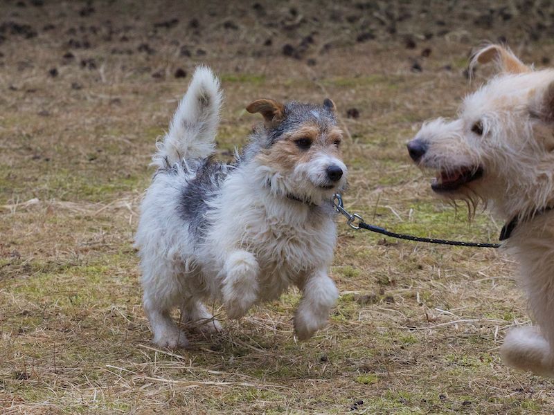 Die schon vorhandene Hündin der Familie war auch gleich gut Freund mit ihm, beide spielten und tobten sofort miteinander.