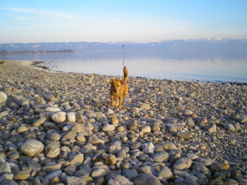 Enzo hat nämlich „Köpfchen“ – und will ausgelastet sein! Reizangel, clickern, Flaschendrehen, Fährtensuche, „Geschenke“ auspacken (und sei es nur eine ausrangierte alte Socke, in der ein Leckerli steckt) u.v.m.… er lernt unglaublich schnell, und wenn Frauchen ein, zwei Tage nacheinander seinen Kopf nicht beschäftigt, ist das gleich zu merken!
