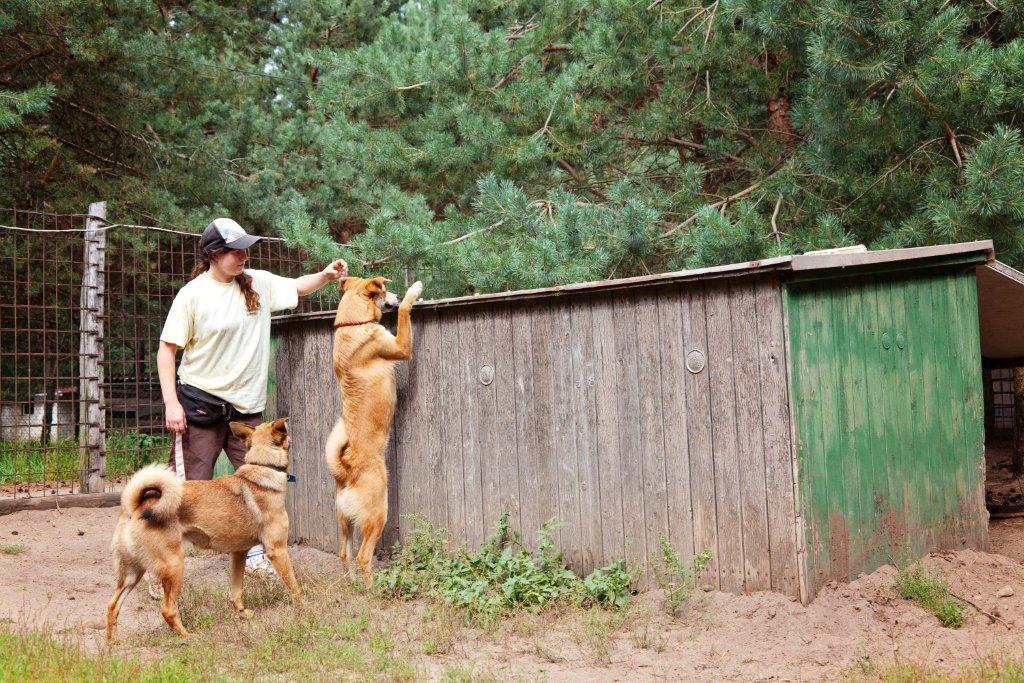 Sheppy und Siralda genießen eine Extra-Spielstunde mit Tierpflegerin Doreen.