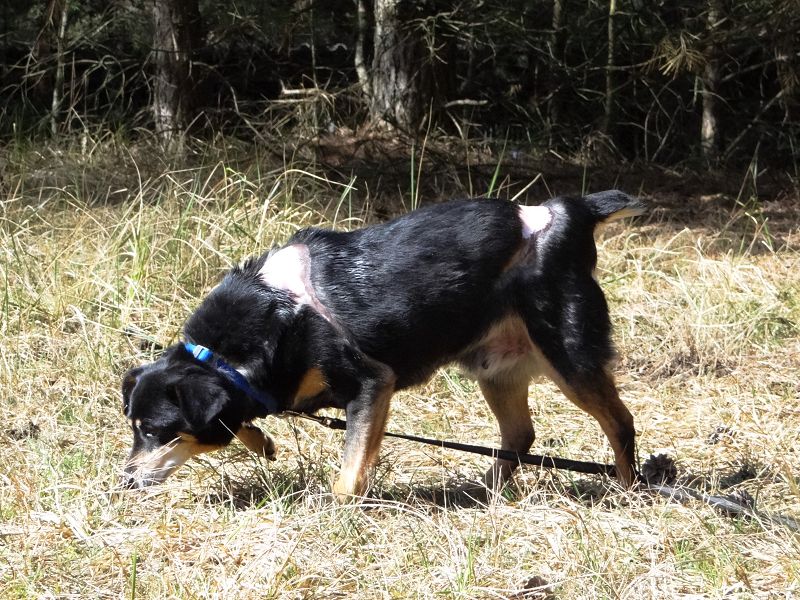 Wir haben mit verschiedenen Cremes und Salben experimentiert. Aber die verträgt sie nicht. Die kahlen Hautstellen werden dann rot entzündlich. Deshalb dürfen auch keine Sonneneinstrahlung oder Frost an die Haut gelangen. Sie muss also sommers wie winters ein Hemdchen oder Mäntelchen tragen, wenn sie draußen ist.