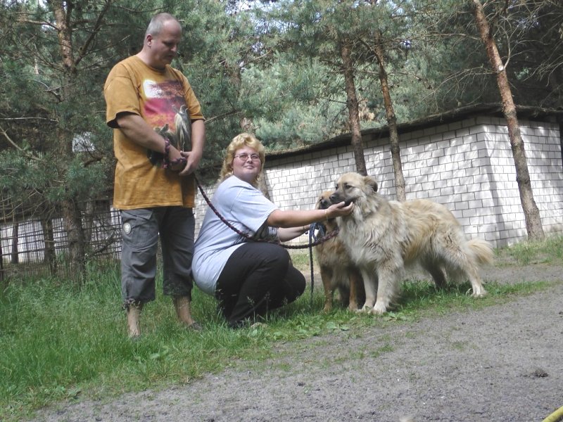 Unser Ehrgeiz hatte uns zuvor veranlasst, beide vor dem vereinbarten Abholtermin noch zu scheren, damit sie mit ihrem dicken Fell im Sommer nicht so viele Probleme haben. Aber gut gemeint ist nicht immer gut gemacht. Kurz nachdem wir die Schere angesetzt hatten, erhielten wir den Hinweis, das seien doch keine Schäferhunde sondern Owtscharkas (kaukasische bzw. zentralasiatische Hütehunde). Diese Rasse ist daran gewöhnt, sommers wie winters in den Bergen allein auf Herden aufzupassen. Dabei dient das lange Fell als Schutz. Im Winter einleuchtend. Aber auch im Sommer ist es notwendig, damit die Sonne - bzw. die UV-Strahlung - nicht die Haut verbrennt. Zum Glück haben wir nicht ganz kurz geschoren und die neuen Besitzer werden nun alles Weitere richten.