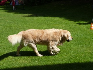 Cherry hat sich auch schon ein paar Lieblingsplätze im Garten ausgesucht, begrüßt uns morgens mit einem freudigen Wedeln und wälzt sich mit Wonne auf dem Rasen. Wir glauben, dass auch er sehr gerne bei uns ist.