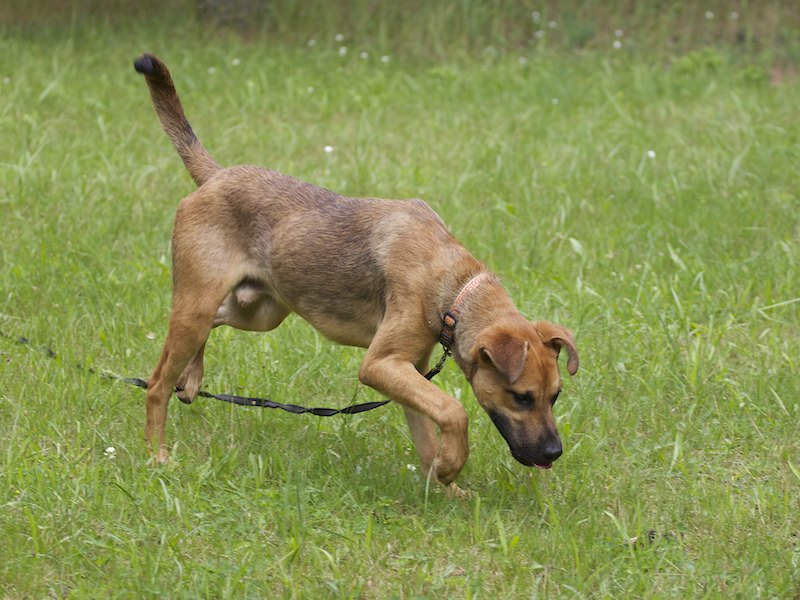 Kalipay ist jetzt im besten Rüpelalter. Er testet ständig aus, wie weit er durchkommt. Anderen Rüden gegenüber lässt er es da auch schon mal am nötigen Respekt fehlen; seinen Kumpel Bonè zwickte er sogar in die Hinterläufe, wenn er gerade in einer übermütigen Tobephase war.
