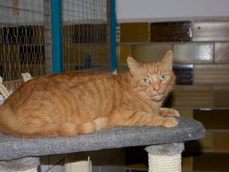 Pumuckl hat seinen neuen Kratzbaum in Berlin in Beschlag genommen.Tierheim Verlorenwasser