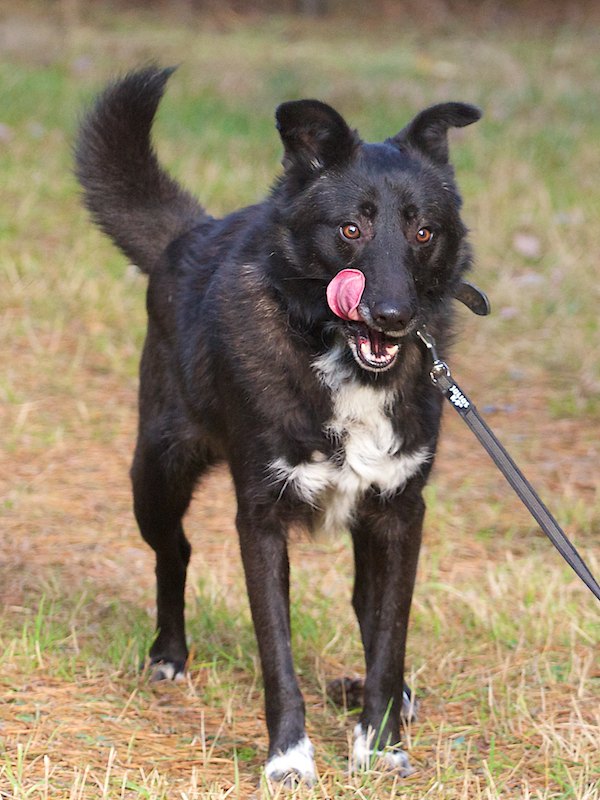 Amory orientiert sich sehr an anderen Hunden, geht problemlos hinterher und blüht richtig auf, wenn sie mit anderen zusammen ist. Wir konnten beobachten, dass sie ihre Kumpel dann richtig zum Spiel auffordert.