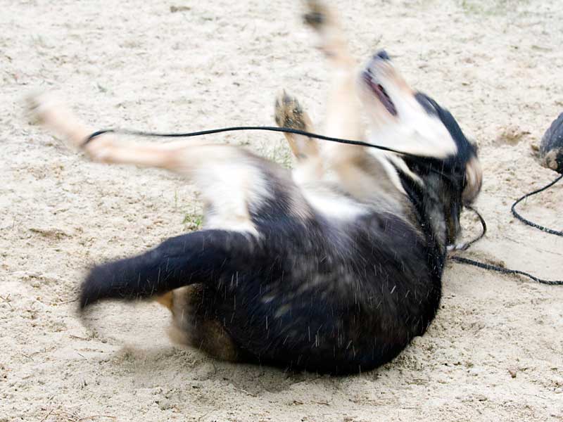 Putzi ist noch kein Jahr alt und sehr agil. Ihre Lebensfreude bringt sie zum Ausdruck, indem sie wild umhertollt und als größten Liebesbeweis durchaus bereit ist auszuprobieren, ob man als kleiner 12-Kilo-Hund einen Zwei-Zentner-Mann beim Anspringen umwerfen kann.