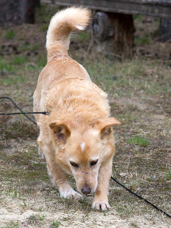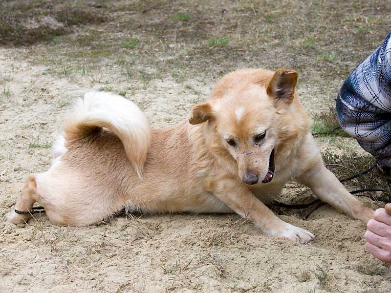 Als er zu uns kam, hatte er Probleme mit einem Vorderbeinchen und humpelte: das Ellbogengelenk war ausgehakt. Die Operation, die wir in einer Spezialpraxis durchführen ließen, brachte leider nicht den gewünschten Erfolg. London schien immer noch Schmerzen zu haben, so dass wir leider an eine Amputation des Beines denken mussten. Doch vorher wollten wir noch Physiotherapie ausprobieren.
