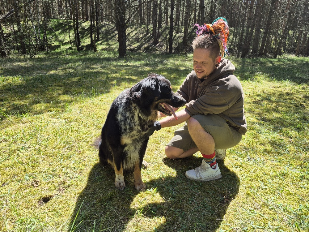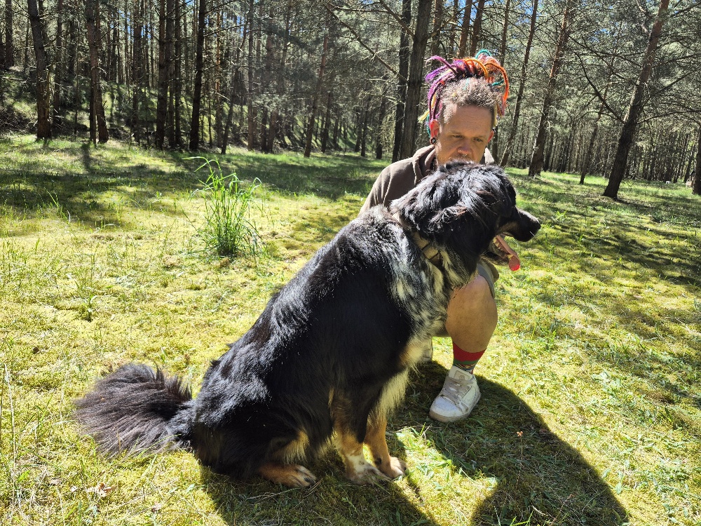 Allerdings muss man standfest sein, denn mit seinen 40 kg hat er einiges an Kraft zu bieten, wenn er seine stürmischen Liebesbeweise verteilt.